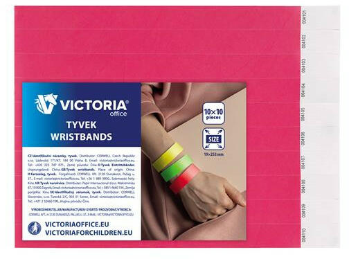A több színben is kapható Victoria Office karszalag, mely ideális megoldás belépése való jogosultság ellenőrzésére és rendezvények látogatószámának nyomon követésére. Kiváló minőségű, könnyű, magas szakítószilárdságú TYVEK alapanyagú, mely rendkívül tartós, vízálló és kényelmes viselet. -méretei: 253 x 19 mm (ho x szé) -feliratozható felület hosszúsá