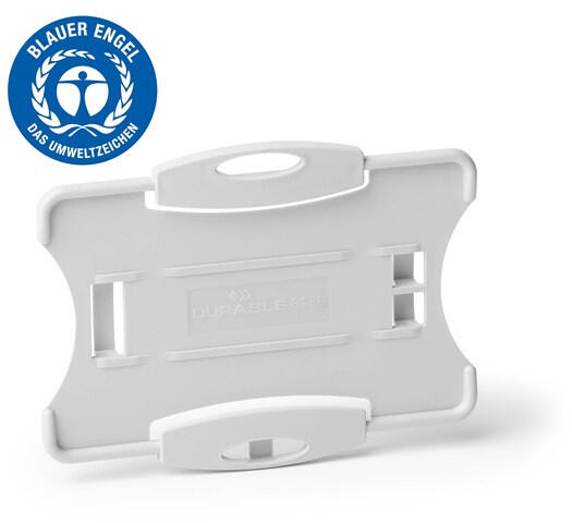 Durable Eco 1 kártya számára 1db szürke biztonságikártya tartó Nyitott azonosítókártya tartó 1 belépőkártya / biztonsági kártya számára Újrafelhasznált alapanyagból készült a Blue Angel igazolásnak megfelelő minőségben A kártyatartó álló és fekvő formátumban is használható Csipesszel, textilszalaggal vagy lánccal is kombinálható