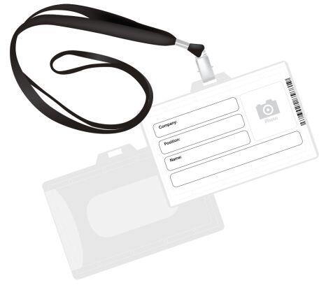 Nyakcímke pánttal 44 cm. Anyaga tömör átlátszó PVC. Mérete: 93x60x2 mm.