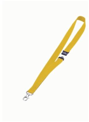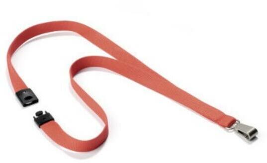 20 mm vastagságú textil szalag, melyet biztosnági zárral láttak el, ami kiold, ha a szalag beakad. Karabinerrel. Minden DURABLE névkitűzővel kombináható, amely kivágással rendelkezik. Hossz: 44 cm Katalóguskód: 24853