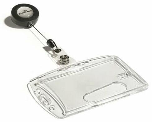 Ovális, kihúzható névkitűzőtartó, fém klippel A biztonsági kártya mindig kéznél van. Minden lyukasztott DURABLE névtartóhoz használható. Karabineres rögzítéssel.