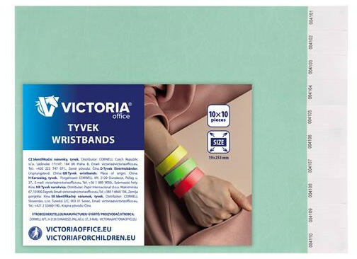 A több színben is kapható Victoria Office karszalag, mely ideális megoldás belépése való jogosultság ellenőrzésére és rendezvények látogatószámának nyomon követésére. Kiváló minőségű, könnyű, magas szakítószilárdságú TYVEK alapanyagú, mely rendkívül tartós, vízálló és kényelmes viselet. -méretei: 253 x 19 mm (ho x szé) -feliratozható felület hosszúsá