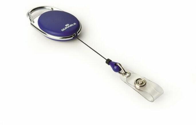 Azonosítókártya-tartó, kihúzható, karabineres, DURABLE "Style", sötétkék - DB832707 - Azonosítókártyák és tartozékaik - Ovális kihúzható kártyatartó, hogy a biztonsági kártya mindig kéznél legyen. -karabinerrel rögzíthető ruházathoz, táskához -a kártyatar