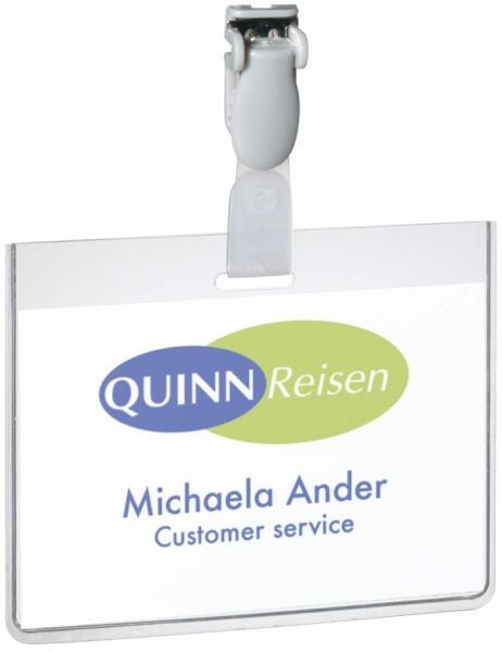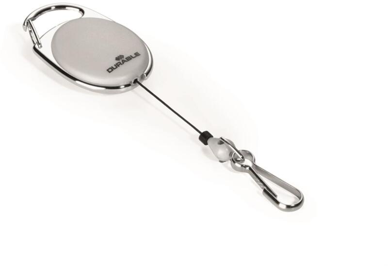 Ovális, kihúzható névkitűzőtartó, fém klippel, széles színválasztékban. A biztonsági kártya mindig kéznél van. Minden lyukasztott DURABLE névtartóhoz használható. Karabineres rögzítéssel. Katalóguskód: 27220