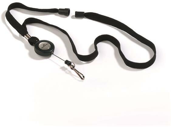 Szíj biztonsági zárral. A biztonsági kiold, ha a hevedert elkapják vagy erősen meghúzzák. Alkalmas a Durable márka összes címkéjéhez. Hossza 44 cm, szélessége 10 mm. 10 db-os csomag. Fekete szín