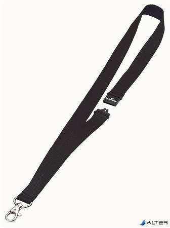 20 mm vastagságú textil szalag, melyet biztosnági zárral láttak el, ami kiold, ha a szalag beakad. Karabinerrel. Minden DURABLE névkitűzővel kombináható, amely kivágással rendelkezik. Hossz: 44 cm Katalóguskód: 24854