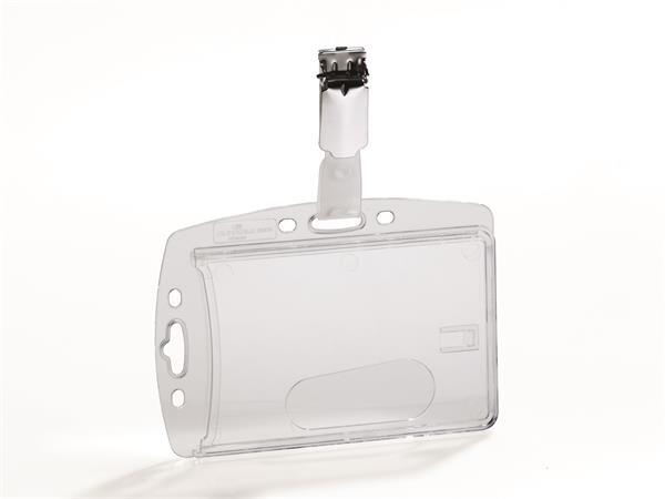 Víztiszta azonosító-, és biztonságikártya-tartó forgatható csíptetővel. -zárt kivitelű biztonsági kártyatartó -1 db kártyához -tetszés szerint álló vagy fekvő formátumban is használható -víztiszta anyagból az optimális olvashatóság és a vonalkódok könnyű beolvasása érdekében -praktikus kivágással, mely lehetővé teszi a kártya könnyű kivételét -kihúzhat