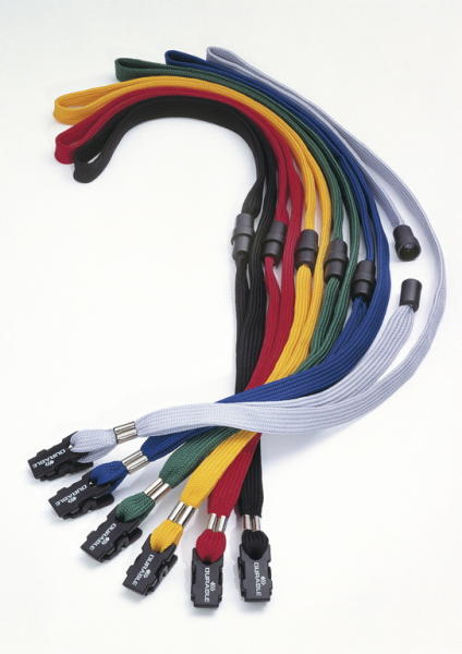 20 mm vastagságú textilszalag, melyet biztosnági zárral láttak el, ami kiold, ha a szalag beakad. -karabinerrel. -minden DURABLE névkitűzővel kombináható, amely kivágással rendelkezik -hossz: 44 cm