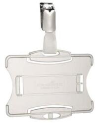 Nyitott kivitelű azonosítókártya-tartó. -nyitott kivitelű kártyatartó -forgatható csíptetővel -1 db kártyához -álló és fekvő formátumban is használható -kombinálható lánccal, textilszalaggal vagy kihúzható tartóval -műanyag -belső méretek: 87 x 54 mm (szé x ma) -külső méretek: 92 x 70 mm (szé x ma)