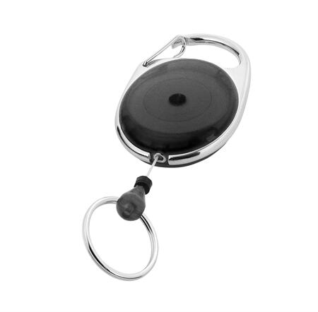 Műanyag-fém kulcstartó vagy kártyatartó egy kis karabinerrel, és egy kihúzható kulcskarikával. Badgetartó, belépőkártya vagy síbérlet tartó, és egy Yoyo elvszerűen kihúzható kihúzható kulcskarikával, ami automatikusan visszahúzódik. Szakmai bemutatókon és munkavállalói névtáblához kiváló. Kulcstartóként is használható. Ideális pass tartóhoz, belépőjegyek,