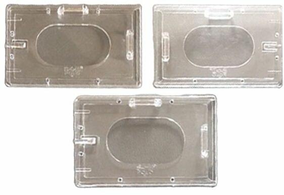 Áttetszõ, merev kártyatok, elõl hátul zárt, 85x54mm belsõ méret. Fekvõ és álló elrendezéssel is viselhetõ.