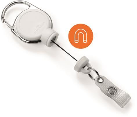 Ovális, kihúzható névkitűzőtartó, fém klippel, széles színválasztékban. A biztonsági kártya mindig kéznél van. Minden lyukasztott DURABLE névtartóhoz használható. Karabineres rögzítéssel. Katalóguskód: 27220