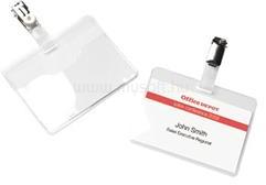 A rendezvények elmaradhatatlan kelléke. - átlátszó, műanyag tok - fehér, betétlappal - fém csiptető, biztósítotűvel kiegészítve - magasság: 57 mm - szélesség: 90 mm