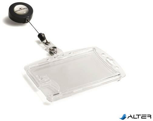 Víztiszta biztonságikártya-tartó kihúzható karabinerrel. -zárt kivitelű biztonsági kártyatartó -2 db kártyához -tetszés szerint álló vagy fekvő formátumban is használható -víztiszta anyagból az optimális olvashatóság és a vonalkódok könnyű beolvasása érdekében -praktikus kivágással, mely lehetővé teszi a kártya könnyű kivételét -klippel, kihúzható tartóv