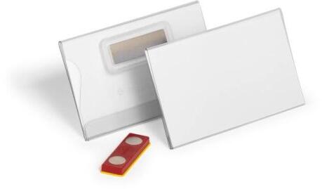 Névcímke speciális mágneses zárással, amely megakadályozza, hogy a névcímke elcsavarodjon, elcsússzon vagy kilazuljon viselés közben Kényelmes viselet és jól olvasható Különösen alkalmas azoknak, akik sokat mozognak, pl. konferenciákon és nagy rendezvényeken Hüvelykujj lyuk a behelyezett lapok cseréjéhez Egyszerű címkézés az ingyenes DURAPRINT® szoftverrel adatbázis