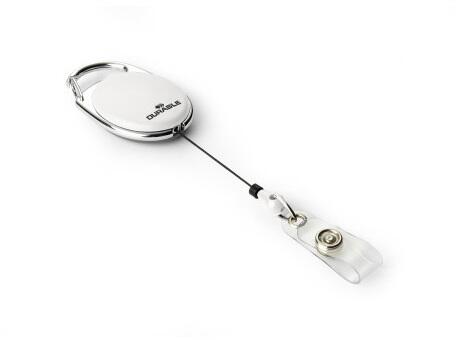 Ovális, kihúzható névkitűzõtartó, fém klippel A biztonsági kártya mindig kéznél van. Minden lyukasztott DURABLE névtartóhoz használható. Karabineres rögzítéssel.