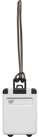 Bőröndcímke tartó, műanyag, a hasznos információk rögzítésére. Termék méret: 5,4 × 7,8 x 0,4cm Emblémázását, feliratozását vállaljuk.
