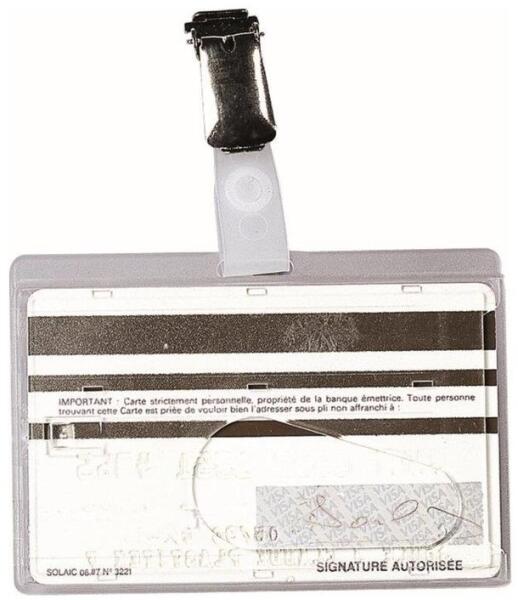 Azonosítókártya tartó DONAU 88x55 mm csipesszel és tűvel átlátszó Kártya tartó csipesszel és biztosítótűvel a hátulján, átlátszó műanyagból. A hátulján lévő ovális ujjnyílás megkönnyíti a kártya kivételét, cseréjét.