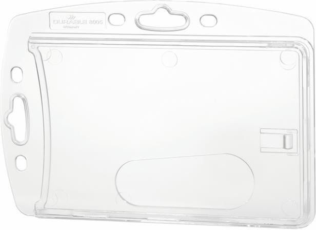 Igényes és praktikus azonosítókártya-tartó. -zárt kivitelű biztonsági kártyatartó -1 db kártyához -tetszés szerint álló vagy fekvő formátumban is használható -víztiszta anyagból az optimális olvashatóság és a vonalkódok könnyű beolvasása érdekében -praktikus kivágással, mely lehetővé teszi a kártya könnyű kivételét -klippel, kihúzható tartóval, lánccal