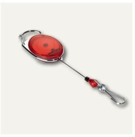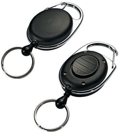 Elegáns ovális orsó kulcstartóval. LED-del, amely megvilágítja a zárat sötétben, és fém kapoccsal övre vagy táskára akasztható. Erős visszahúzható zsinór intenzív használathoz.