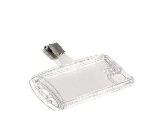Erős átlátszó rugalmatlan műanyagból készült két műanyag kártya címke, amely mindkét oldalról védi a kártyákat. Kártyák behelyezése a rövid oldalon. Vízszintesen és függőlegesen is használható. Fogós rögzítés. 25 db-os csomag. Méretek: 85x54 mm