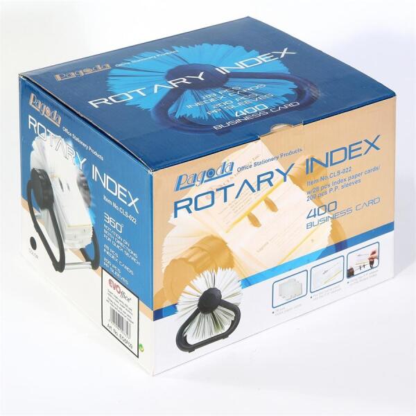 Asztali, fém szerkezetű, forgatható névjegykártyatartó, A-Z betűrendszerezési lehetőséggel, 200 átlátszó zseb összesen 400 db névjegykártya tárolására. Méret: 167x115x120 mm. Névjegykártya maximális mérete 59x101 mm. Katalóguskód: 7691 Szavatosság: a jogszabályi előírások szerint.