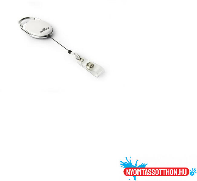Névjegykártyatartó kihúzható patentos, Durable Style fehér Stílusos ovális névjegykártya tartó fémből, fém rögzítéssel. Lehetővé teszi a biztosági kártyák gyors és könnyű kezelhetőségét. Hossz: 80 cm