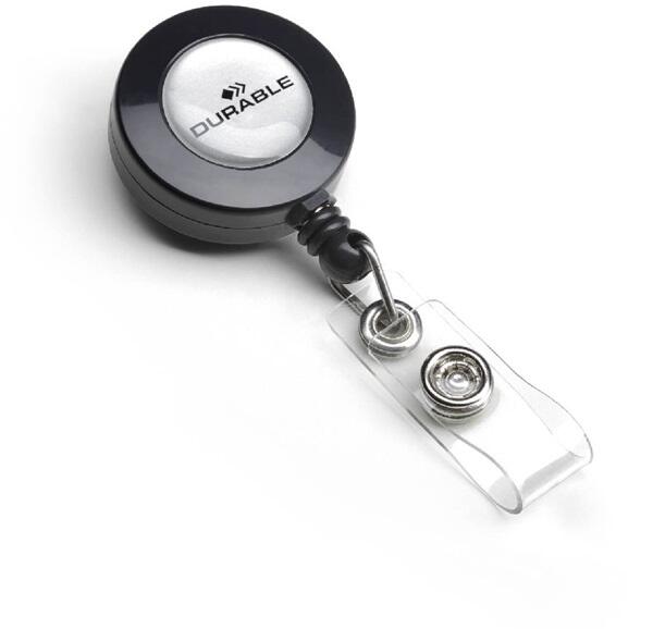 Névjegykártyatartó kihúzható patentos, Durable fekete minden kivágással rendelkező DURABLE névkitűzővel használható Hossz: kb. 85 cm Iideálisan használható biztonsági kártyatartóval (8118) Katalóguskód: 25160