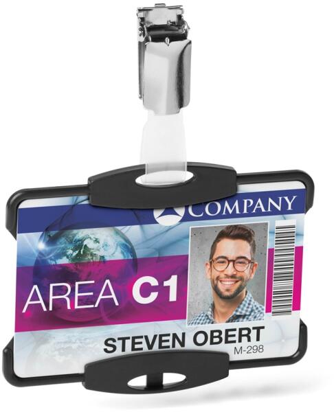Nyitott kivitelű azonosítókártya-tartó. -nyitott kivitelű kártyatartó -forgatható csíptetővel -1 db kártyához -álló és fekvő formátumban is használható -kombinálható lánccal, textilszalaggal vagy kihúzható tartóval -műanyag -belső méretek: 87 x 54 mm (szé x ma) -külső méretek: 92 x 70 mm (szé x ma) Itt megtekinthető és letölthető a termékadatlap. Alcsoporttar