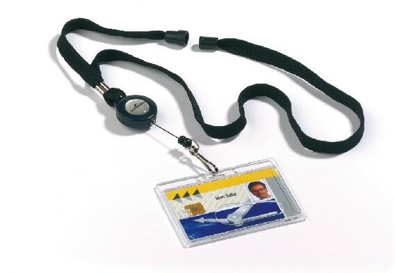 Névkitűző tartó Durable kihúzható fekete szalaggal Névkitűző tartó Durable kihúzható fekete szalaggal