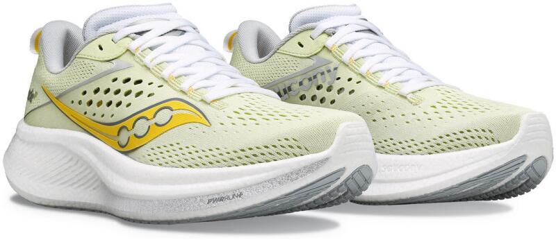 SAROK MAGASSÁG: 35 mm LÁBJMAGASSÁG: 27 mm A Saucony RIDE 17 W modellel megtapasztalhatja a kívánt felfüggesztést. Ez egy könnyű futócipő fejlett PWRRUN+ technológiával, nagy energiavisszatéréssel és sima futófelülettel. A PWRRUN+ technológia kiváló kényelmet biztosít, így a cipő alkalmas a mindennapi futásra. Extra légáteresztő képesség és nagyobb kényelem garantá