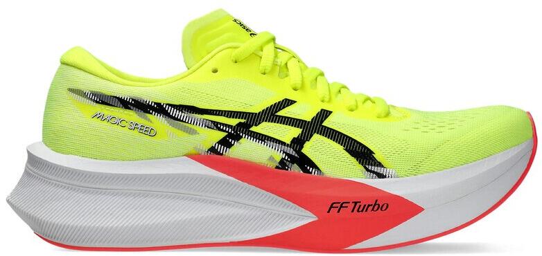 Női futócipő ASICS Magic Speed 4. Bemutatjuk az ASICS-től az újdonságot - Magic Speed 4, tornacipők kifejezetten a versenyzési ambícióitokra tervezve. A Magic Speed 4 nagyobb mértékű ütéscsillapítást kínál, amit a jobb energia visszanyerés köszönhetően még élvezetesebben fogsz tapasztalni, mint az előző generációnál. Természetesen rendelkezik szénlemezzel, amely egy