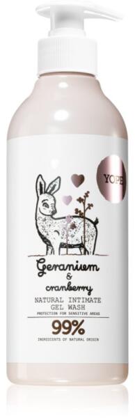 Yope Geranium & Cranberry, 300 ml, Intim mosakodógél nőknek, A minőségi Yope Geranium & Cranberry készítmény az intim testrészek mindennapi gyengéd és kíméletes ápolására szolgál. Tulajdonságok: gyengéden mossa le az érzékeny testrészeket hosszan tartó frissességérzetet ad tekintettel van az egészséges bőr természetes mikrobiomjára nem irritál Összetétel: v
