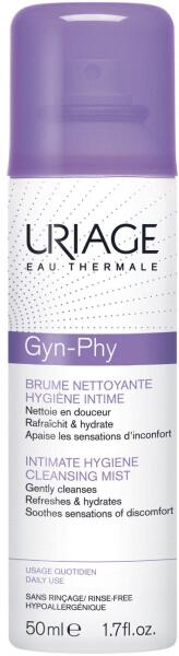 Uriage Gyn Phy intim spray, 50 ml A fiziológiás pH-értéknek köszönhetően ezek a gőzök tisztítják, frissítik és finoman megnyugtatják az intim területet, tiszteletben tartva annak egyensúlyát. Előnyök: Tisztító komplexe, a GLYCO-GYN, finoman, szárítás nélkül tisztít, és hozzájárul a nyálkahártya sajátos egyensúlyának fenntartásához. Az Uriage termálvíz hidrat
