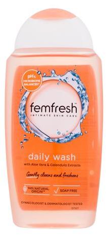 Élvezze a mindennapi frissességet a Femfresh Daily Wash intim mosakodógéllel, melynek összetételében Aloe vera és körömvirág szerepel, így hidratálja és nyugtatja a bőrt. Egyensúlyban tartja az intim területek természetes mikrobiomját.
