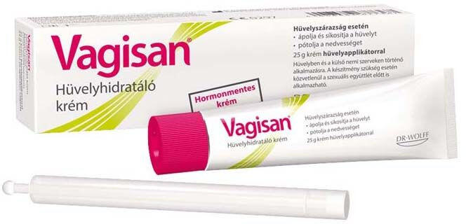 Vagisan hüvelyhidratáló krém - a hormonmentes hüvelykrém. Figyelem! A kép csak illusztráció, az ár az 50 g-os kiszerelésű termékre vonatkozik. A Vagisan fehér, lágy krémje nedvességgel és ápoló lipidekkel látja el a száraz hüvelyt. Már az első használat után csillapítja a hüvelyszárazság által okozott tüneteket, így a szárazságot, az égő érzést, a viszketés