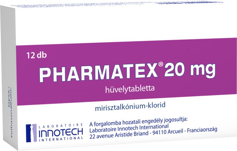 Betegtájékoztató: Információk a felhasználó számáraPharmatex 20 mg hüvelytablettamirisztalkónium-klorid Mielőtt elkezdi alkalmazni ezt a gyógyszert, olvassa el figyelmesen az alábbi betegtájékoztatót, mert az Ön számára fontos információkat tartalmaz. Ezt a gyógyszert mindig pontosan a betegtájékoztatóban leírtaknak, vagy az Ön kezelőorvosa vagy gyógyszerésze által
