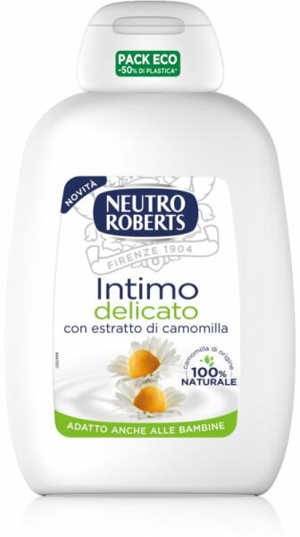Neutro Roberts Intimo & Estratto di Camomilla, 200 ml, Intim mosakodógél nőknek, Szeretné magát üdének és magabiztosnak érezni? A kímélő Neutro Roberts Intimo & Estratto di Camomilla gyengéden ápolja és tisztán tartja az intim testrészek külső bőrfelületét, és kellemes közérzetet biztosít. Ráadásul kifejezetten úgy készült, hogy figyelembe vegye és ne káros