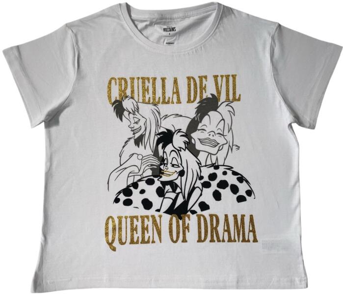 Női póló 101 Kiskutya - Szörnyella (fehér) Divatos darab, amely lehetővé teszi a hölgyek számára, hogy kényelmes ruhát válasszanak sporthoz és hétköznapi viselethez az eredeti Cruella nyomtatással. A rövid ujjú póló egy egyszerű trendi darab, amely elegánsabb vagy sportszerű kiegészítőkkel kombinálható és biztosan nem hiányozhat a gardróbból. Mennyiség: 1 db Anyag