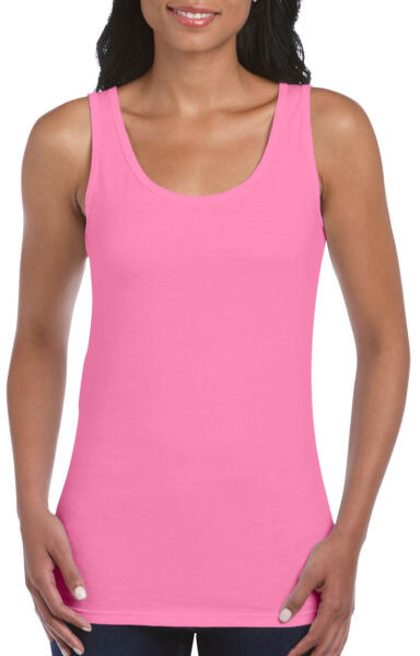 SOFTSTYLE® NŐI TRIKÓ 153.0 g/m2 (White 144.0 g/m2) 100% Pamut Pamut/poliészter keverék egyes színek esetében Testhez álló, oldalvarrott Simább nyomási felület a magas öltéssűrűségnek köszönhetően 3,8 cm széles pánt S-L méreteken, 4,4 cm széles pánt XL-2XL méreteken Rib kötéses szegély a nyak-és karkivágásnál Kitéphető címke Dupla tűzésű derékrész Átterveze