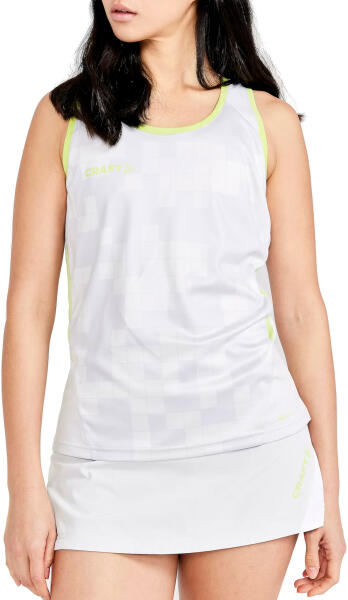 Könnyű, női sport trikó, amely remek minden sporttevékenységhez. Karcsúsított slim fit szabású, magasabb nyakkivágással, oldalsó varrásokkal és lekerekített hátsó szegéllyel rendelkezik. A nyak és a hónalj körüli megerősítő szalag az elegáns megjelenés fenntartása érdekében ugyanabból az anyagból készült. A rugalmas, 2-irányú sztreccs anyag biztosítja a könny