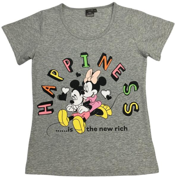 Női póló - Minnie Mouse Hapiness (szürke) Divatos darab, amely lehetővé teszi a hölgyek számára, hogy kényelmes ruhát válasszanak sporthoz és hétköznapi viselethez az eredeti Minnie Mouse nyomtatással. A rövid ujjú póló egy egyszerű trendi darab, amely elegánsabb vagy sportszerű kiegészítőkkel kombinálható és biztosan nem hiányozhat a gardróbból . Mennyiség: 1 db A