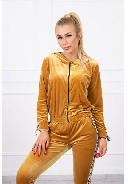 Bemutatjuk Önnek pulóverek és nadrágok sorozatait. A készlet velúrból készül. A pulóverhez kapucnival és cipzárral van felszerelve. Dekoratív szalag a vállán felirattal. A pulóver alján gumival varrott. Nadrág zsebekkel és szalaggal a lábakon. Nagyon divatos és elegáns szett. A készlet kiváló minőségű anyagból készül. A méret univerzális, és alkalmas lesz S, M vag