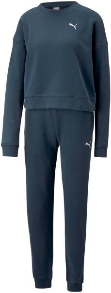 A Puma LOUNGEWEAR SUIT W nőknek egy gyönyörű kék színű tréningruha, amely kiváló minőségű, kényelmes és puha anyagból készült, így állandóan sétálni fog benne. Ez a szett egyszerű stílussal büszkélkedhet, gyönyörű részletekkel, bordás mandzsetták és szegélyek formájában, amelyek szintén nagyon praktikusak, mivel biztonságosan a helyükön tartják a ruhákat.
