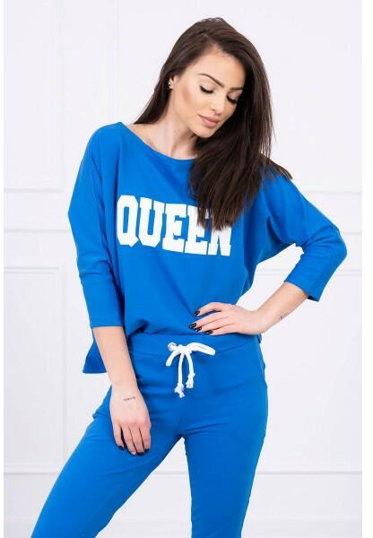 Bemutatjuk Önnek egy blúz és nadrágot. Túlméretes blúz Queen nyomtatással. Nadrág zsebekkel és nyakkendővel a derekán. A készlet kiváló minőségű anyagból készül. A méret univerzális, és alkalmas lesz S, M vagy L méretű hölgyeknek.