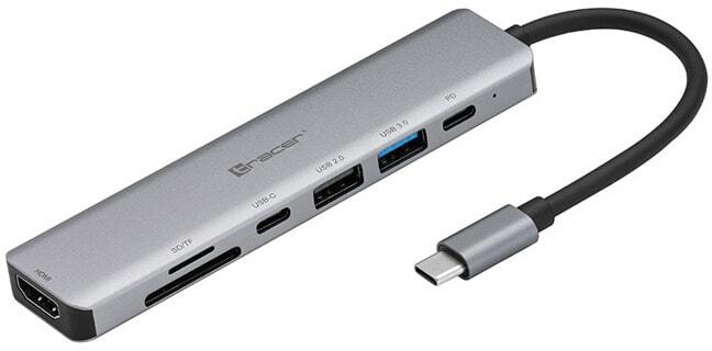 A Tracer A-2 adapter tökéletes megoldás mindenkinek, akinek egyszerre több portot kell használnia – lehetővé teszi PC-je és laptopja potenciáljának bővítését, valamint kompatibilis okostelefonok használatát a munkához. vagy játszani. Többfunkciós készülék. Modern USB-C csatlakozó. 7 port: USB 3.0, USB 2.0, HDMI 1.4, USB-C, SD, MicroSD, PD do 60W, Könnyű alumínium burko