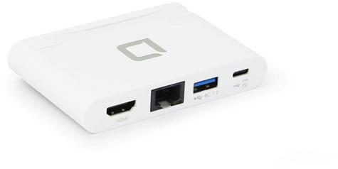 Univerzális dokkoló Type C porttal. - HDMI csatlakozás 4K2K, 30 Hz - MiniDP csatlakozás 4K2K, 30 Hz - VGA csatlakozás maximum Full HD felbontásig - USB Type C port - 3 darab USB 3.0 port - Gigabites LAN port - Sztereó audio port - MicroSD / SDHC, SDXC, MMC kártyaolvasó - 12,0 x 12,0 x 1,7 cm - 230 gramm