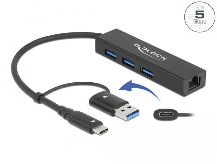 Ez a Delock biztos USB hub fém kerettel összeköthető egy számítógéppel, laptoppal vagy mobil eszközzel A-típusú USB vagy USB-C csatlakoztató felületen keresztül. Akár három USB eszköz csatlakoztatható az elosztóhoz. Beépített 10/100/1000 Mbps LAN csatlakoztató felület Továbbá, az elosztó a beépített RJ45 gigabit LAN kapcsolódással kibővít egy személyi... Ez a Deloc
