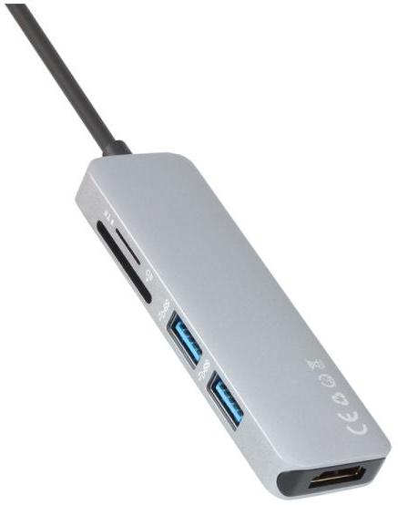 Iris IH5 5in1 Dokkoló Csatalkozás tipusa: Type-C Méret: 8.3cm x 2.8cm x 1.1mm Ház anyaga: Aluminium 1 x HDMI 4K 30hz 1 x Micro SD 1 x SD kártya olvasó 1 x USB-A 3.0 1 x USB-A 2.0