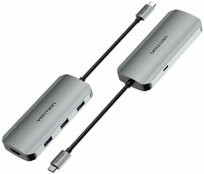 Alumínium hub USB-C-n keresztül csatlakoztatva három USB A porttal, USB-C tápellátással és HDMI port 4K monitor csatlakoztatásához. A szupergyors adatátviteli USB HUB HDMI-adapterrel kiválóan kiegészíti az elegáns, vékony ultrabookot, amelyből néha hiányoznak a szükséges portok. A hub lehetővé teszi két eszköz csatlakoztatását egy tipikus USB A-n keresztül, pl. Flash me